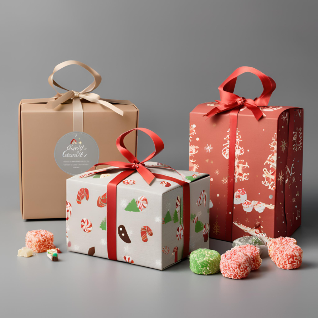 Festive gift boxes for candy and sweets, ideal for holiday gifting.