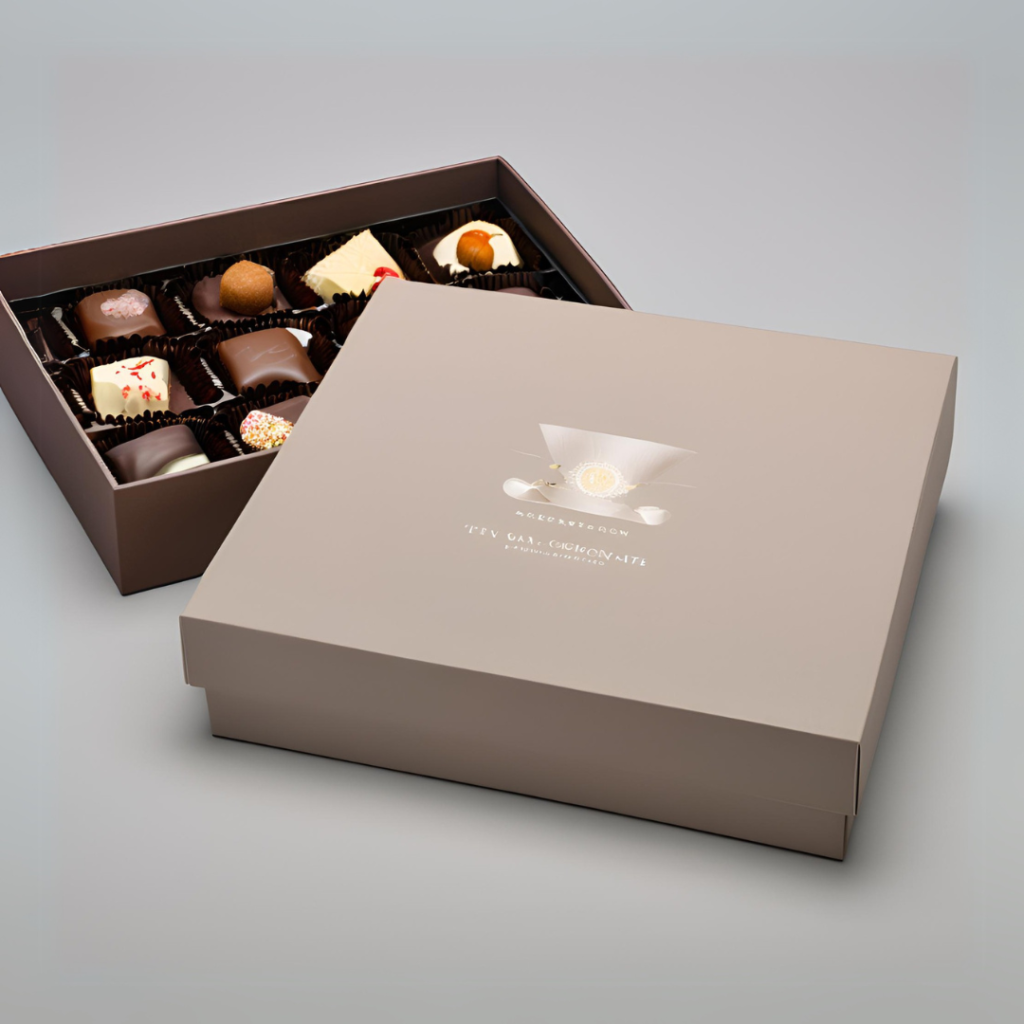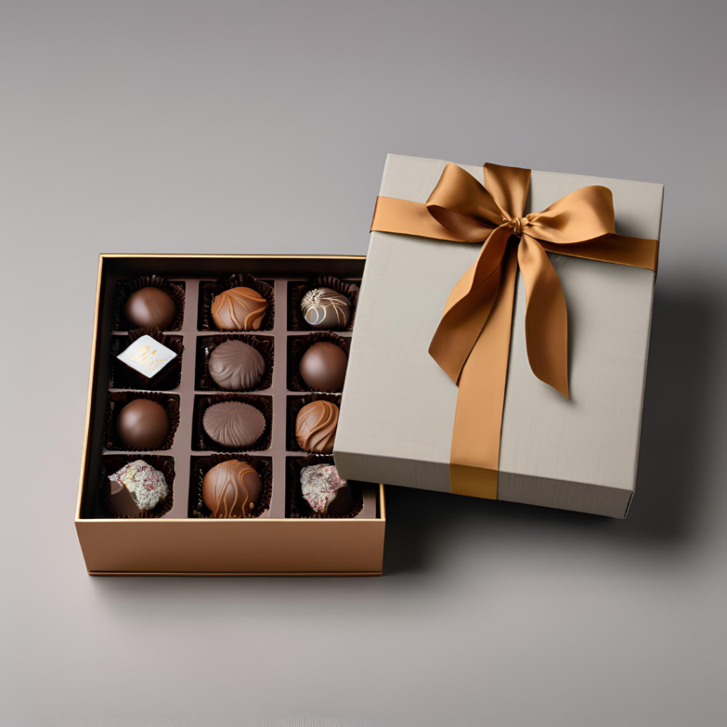 Luxurious packaging for chocolate gifts, designed for a high-end experience.
