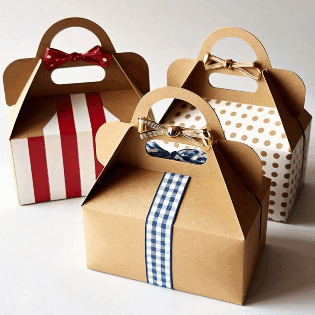 Stylish gable boxes with handles for cakes and desserts.
