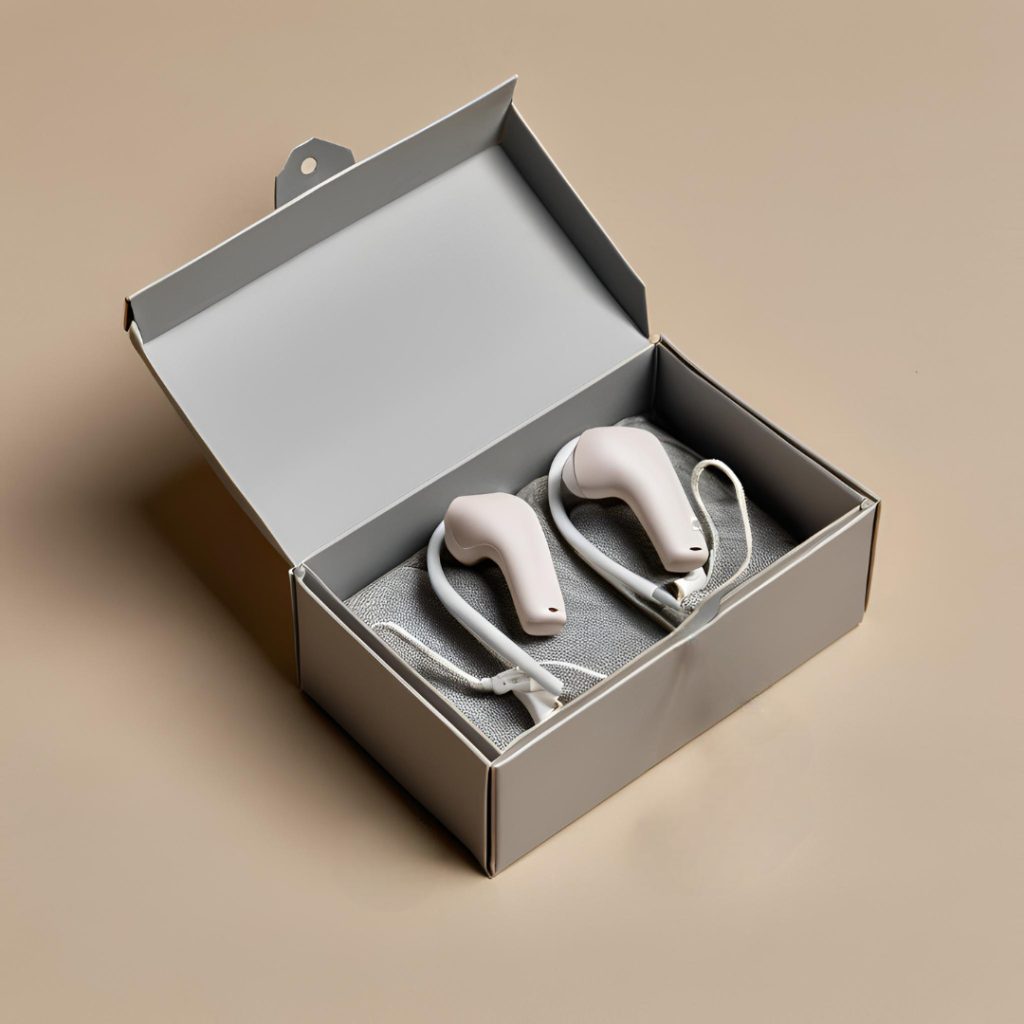 Elegant magnetic closure boxes designed to package and protect earphones stylishly.